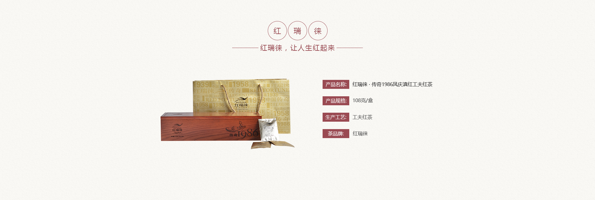 红瑞徕 传奇1986凤庆滇红工夫红茶 108克